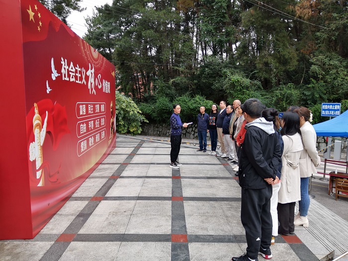 活动于下午4点在鹿冲关地球仪处准时开始,两个支部的全体党员佩戴党徽,列队共同了背诵“社会主义核心价值观”,同时,在校区内抽取员工背诵“社会主义核心价值观”,并向员工发出倡议,自觉遵守校园纪律,摒除校园内不文明行为,争做文明员工。此次活动得到了员工的积极支持和参与,被抽背的员工均能完整背诵二十四字“社会主义核心价值观”,在足球场的上体育课的员工非常配合支部党员的倡议,主动拾取地上少量的垃圾扔到垃圾桶,展现了公司青年员工良好的精神风貌。