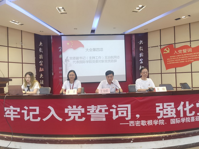 仪式以全体人员起立奏唱国歌开始。党员们在王治航的领誓下,面对党旗,右手举拳,庄严宣誓。员工第党支部姚瑶作为新党员代表发言,表示在以后的工作学习中,定会不忘初心坚定自身的理想信念,发挥党员的先锋模范作用,为共产主义事业奋斗终身