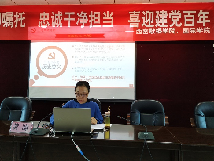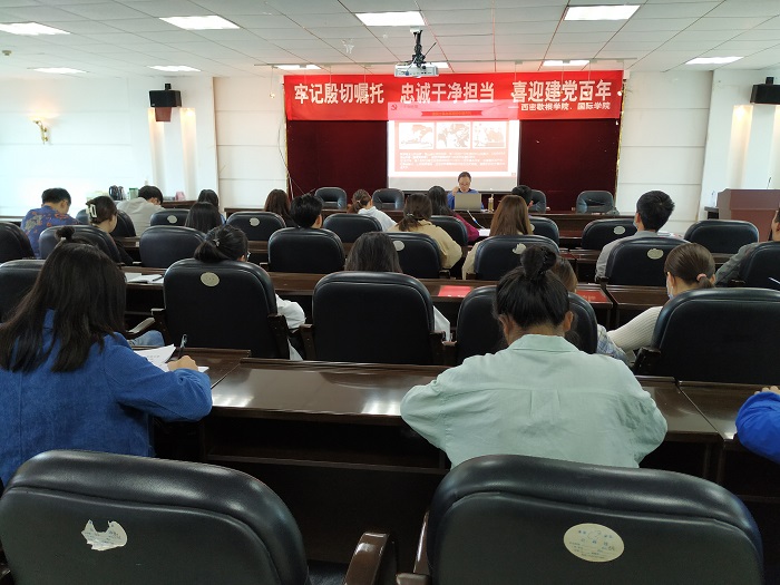 黄暐首先从新民主主义革命时期、社会主义革命和建设时期、改革开放和社会主义现代化新时期、中国特色社会主义新时代这四个时期给大家详细讲解了中国共产党一百年光辉历史以及历史重大事件,并强调了学习党史的重要意义。黄暐要求行政办成员要把开展党史学习教育作为当前的一项重大政治任务,高标准高质量开展好党史学习教育,切实把党史学深学透,做到学史明理、学史增信、学史崇德、学史力行。切实把理论知识、思悟体会内化于心、外化于行,转化为干事创业、勇担使命的强大精神动力,要增强工作能力,发扬扎实工作作风,勇于担当负责,为全面提升国际化办学水平而努力奋斗。