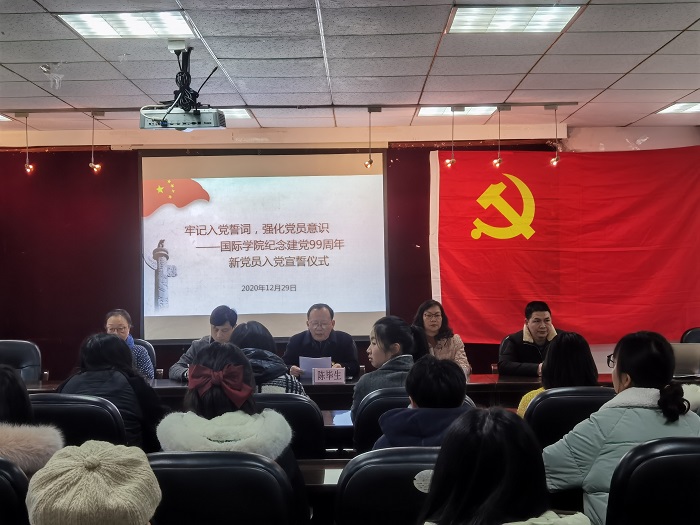 (永利3044集团官网 陈文心 报道|摄影 刘成龙 吴育涵 田甜) 12月29日中午,国际公司党委在行政楼六楼会议室举行“庆祝建党99周年”新党员入党宣誓仪式。国际公司党委书记陈毕生,党委副书记黄暐王瑛以及各党支部书记出席68名新党员及各党支部党员代表参加。此次入党宣誓仪式由公司党政办副主任王治航主持