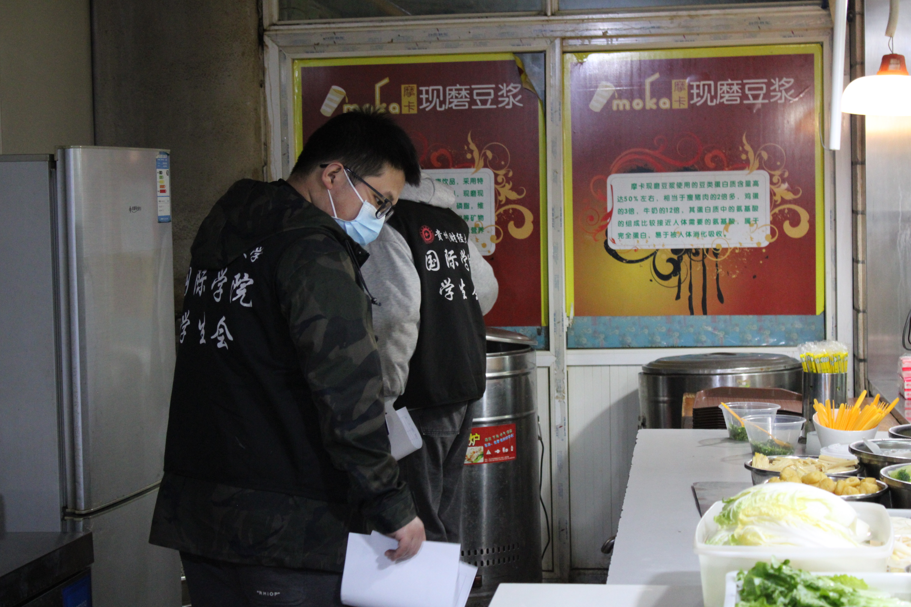 员工会代表就食品留样、食品日期、冰箱存放、环境卫生等方面进行了现场查看。同时,也将前期同学们收集整理反馈的相关问题与食堂管理人员进行了及时的沟通。食堂管理人员表示,他们将对同学们反馈的问题限期整改,在确保师生的饮食卫生安全的同时,努力为同学们提供更优质的服务。