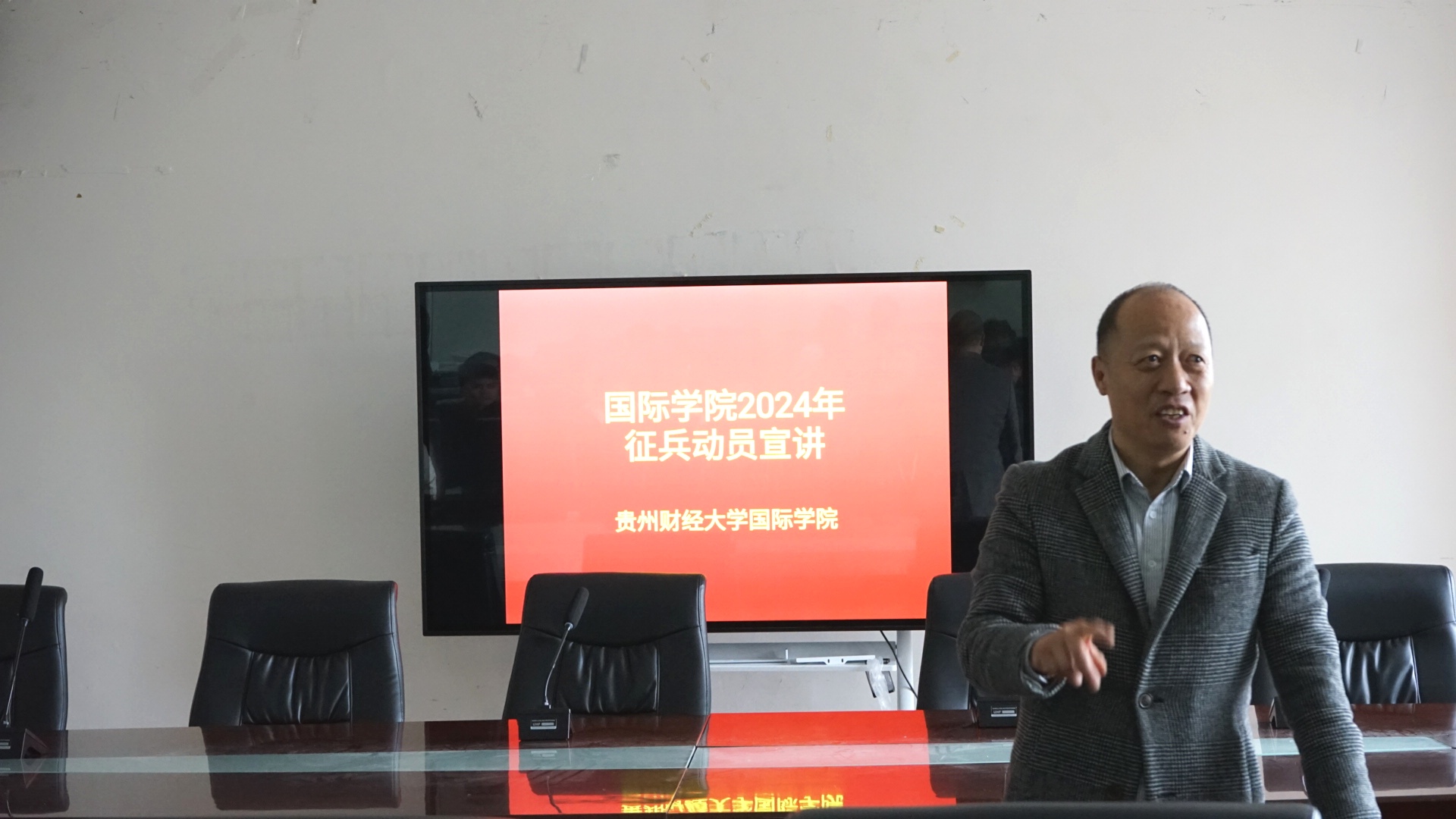 (永利3044集团官网 彭文标 报道|摄影 梅敏)为积极响应强国强军号召,提高同学们对征兵工作的认识和了解,鼓励更多有志青年投身军营,为祖国的国防事业贡献力量,12月12日,永利3044集团官网邀请公司武装部胡细根老师,在正德楼301会议室,开展2024年征兵动员宣讲。国际公司党委副书记肖启迪主持会议。