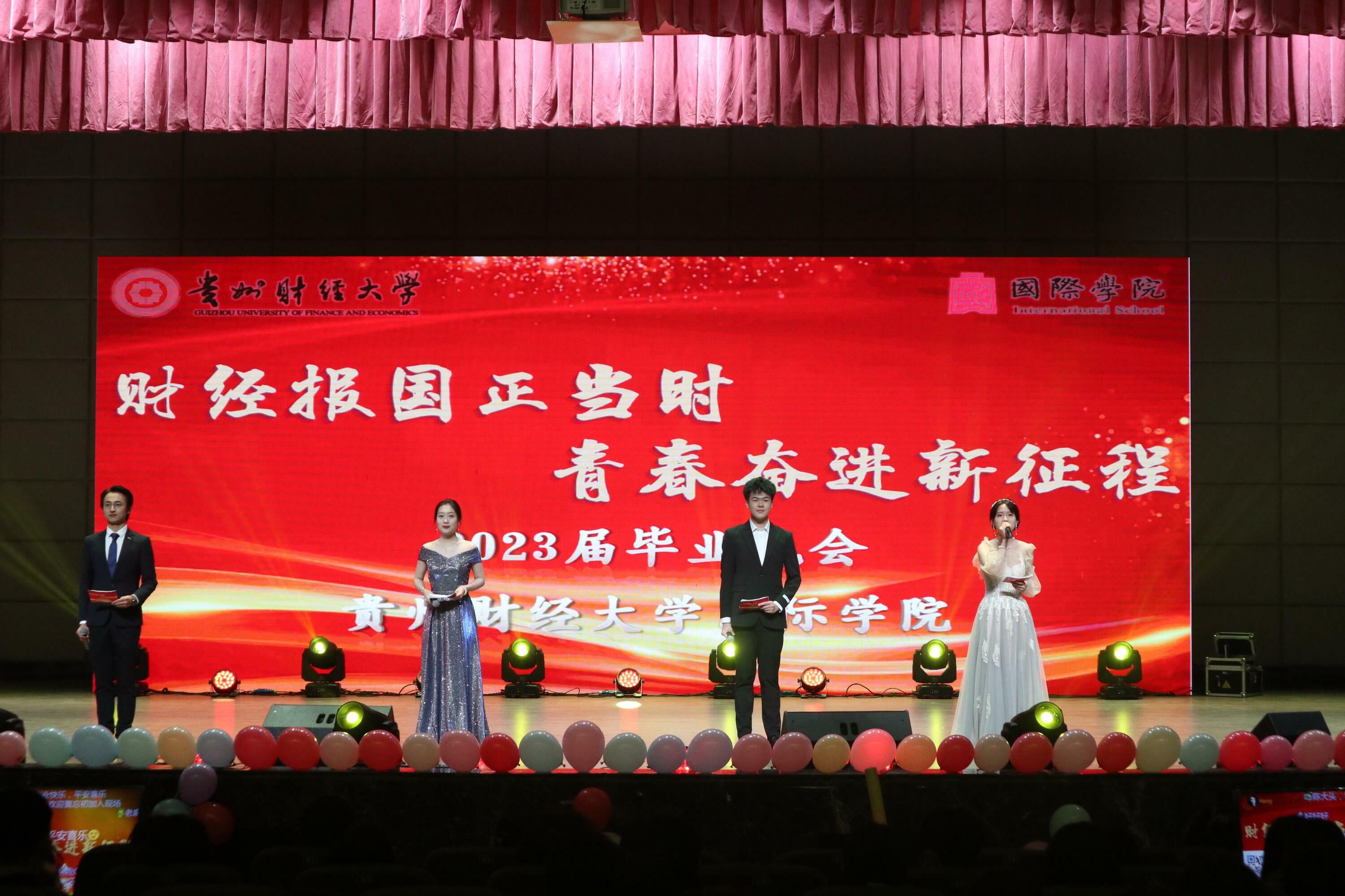 (永利3044集团官网 许甜甜 报道|摄影 马星妍 窦映红)5月9日晚19:00,永利3044集团官网“财经报国正当时,青春奋进新征程”2023届毕业晚会在鹿冲关校区一教大礼堂举行。国际公司党委书记王治航,党委副书记肖启迪亲临现场与毕业生们一起观看晚会。本次晚会采用线下主会场、线上分会场微博同步直播的方式进行。
