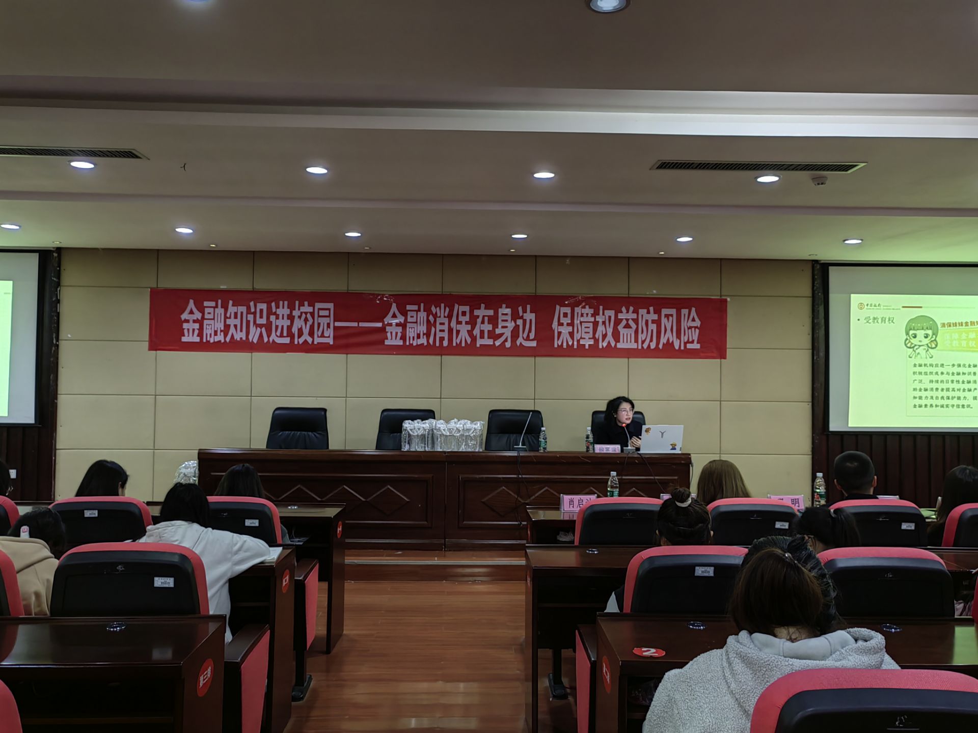 (永利3044集团官网 王尧 报道|摄影 杨紫涵 田甜) 在“3.15”消费者保护权益日来临之际,为进一步普及金融知识,引导同学们树立正确的消费观,增强金融防范意识,3月15日,永利3044集团官网邀请中国银行花溪支行客户经理鲍寒琳,在正德楼115报告厅举办“金融知识进校园——金融消保在身边,保障权益防风险”主题讲座。国际公司党委副书记肖启迪,永利3044集团官网团委副书记颜华菲,中国银行花溪支行行长、3044永利集团集团优秀员工邓明,中国银行贵安分行个数部副主任孙晓彤,中国银行贵安分行综管部经理辛媚,中国银行贵安分行客户经理熊再伦出席此次活动。