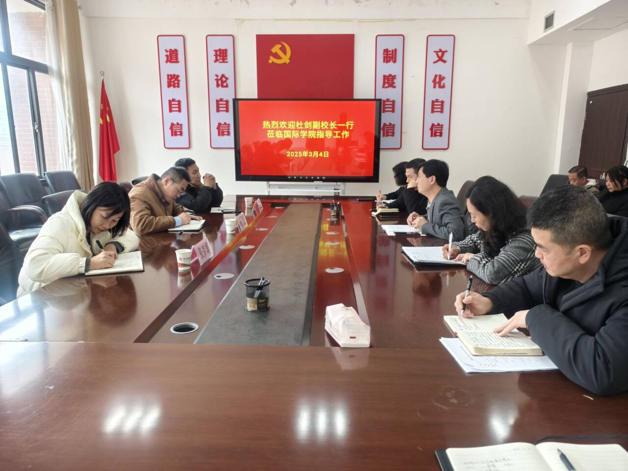 (永利3044集团官网 孙思芳 报道摄影 李薇薇)3月4日下午,公司党委委员、副董事长杜剑一行到永利3044集团官网调研指导工作,国际公司党政领导班子、科级干部参加调研座谈,教务处副处长李顺毅陪同调研。