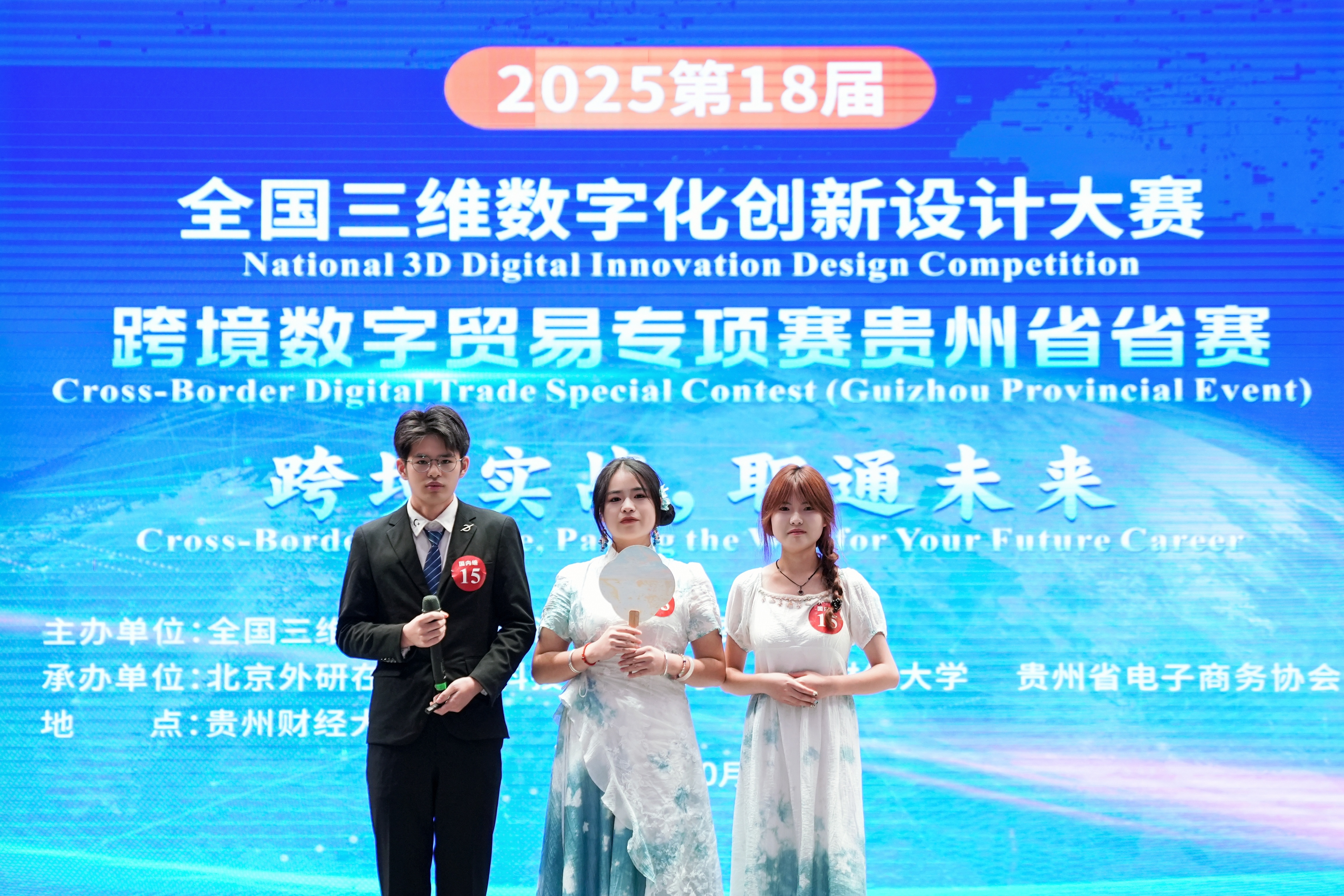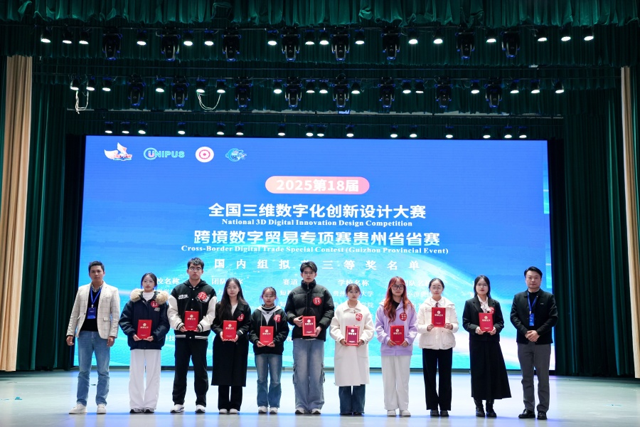 (永利3044集团官网 沙静 图文报道)10月25日,由3044永利集团集团、北京外研在线数字科技有限公司、贵州省电子商务协会共同承办的,2025第18届全国三维数字化创新设计大赛(以下简称全国3D大赛)跨境数字贸易专项赛贵州省省赛在3044永利集团集团员工活动中心举行。3044永利集团集团副董事长杜剑,对外经济贸易大学现代服务业研究中心首席教授陈进,组委会成员单位北京外研在线数字科技有限公司首席内容官兼职业教育事业部总经理徐一洁,全国三维数字化创新设计大赛组委会秘书处副主任姜宛辰,贵州电子商务职业公司副董事长邓院生,贵州省电子商务协会党委书记、会长孔祥兰等领导嘉宾以及永利3044集团官网380余名师生参加。本届专项赛省赛分初赛和复赛两个阶段,初赛吸引了来自省内13所院校,165支国内队伍和9支国际队伍报名程参加,其中,国际组的队员分别来自俄罗斯、泰国、越南等十个国家。经过评选,40支队伍入围省赛复赛路演。