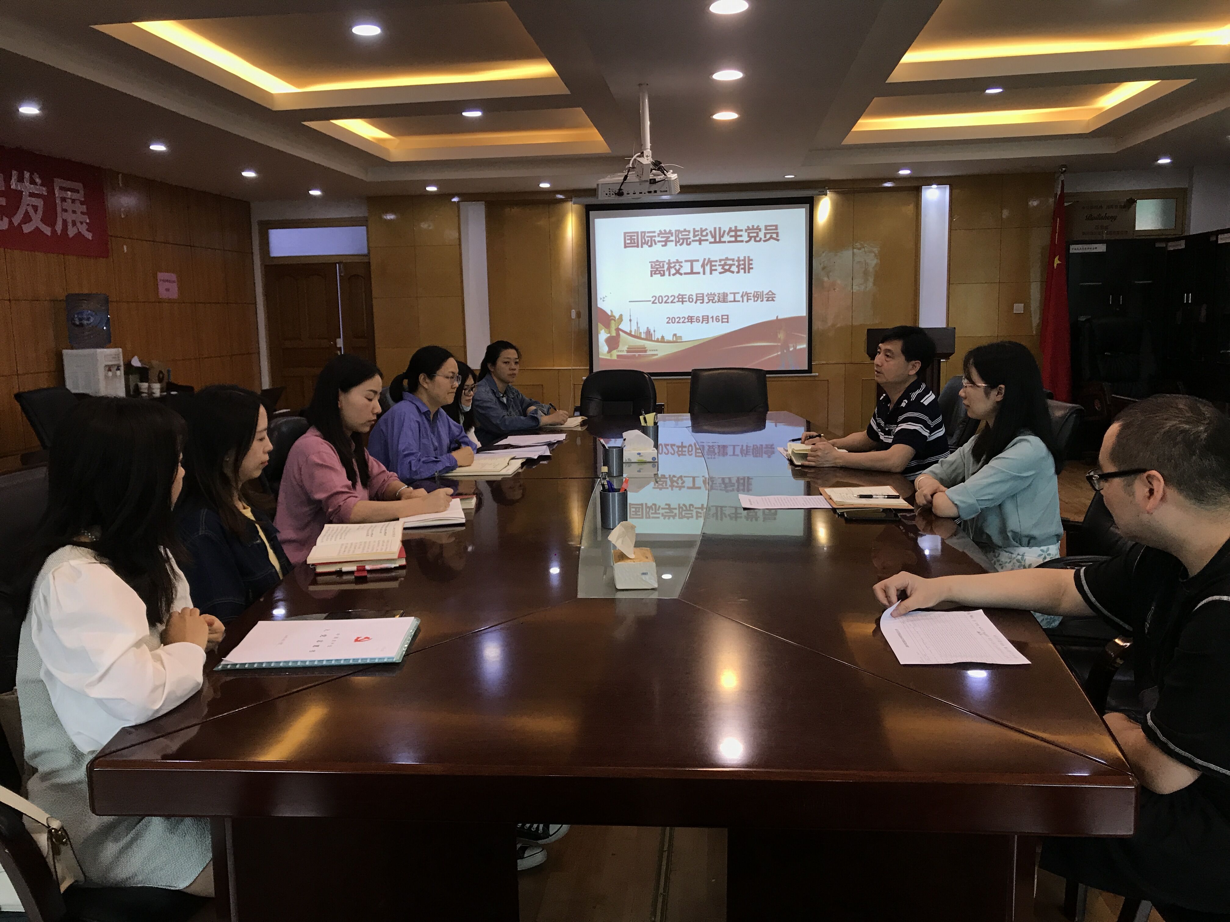 (永利3044集团官网 潘吉 报道|摄影 卫荷)为做好2022届毕业生党员离校工作,6月16日,国际公司党委在行政楼3楼会议室召开党建工作例会,对毕业生党员离校相关工作进行安排。会议由国际公司党委书记王治航主持,国际公司党委副书记肖启迪列席,公司支部书记、专职组织员参加会议。