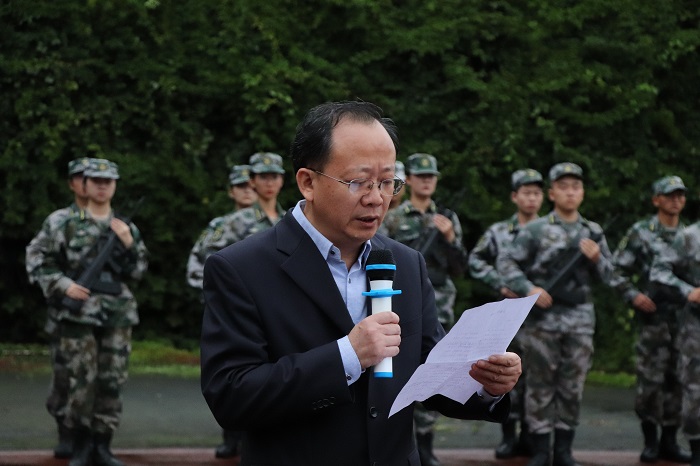 国歌奏响,五星红旗冉冉升起。师生们向国旗行注目礼,齐唱国歌,现场庄严而又肃穆。国际公司党委书记陈毕生做国旗下讲话。他指出,中华民族伟大复兴的征程仍在继续,全院师生都应响应习近平总书记的号召“勇做走在时代前面的奋进者、开拓者、奉献者”,各位青年学子要牢固树立道路自信、理论自信、制度自信、文化自信,做到“不忘初心,牢记使命”,立足本职工作,坚守自己的岗位,以高昂的斗志、饱满的精神投身到工作、学习、校园文化生活中,努力成为中国特色社会主义事业的合格建设者和可靠的接班人!