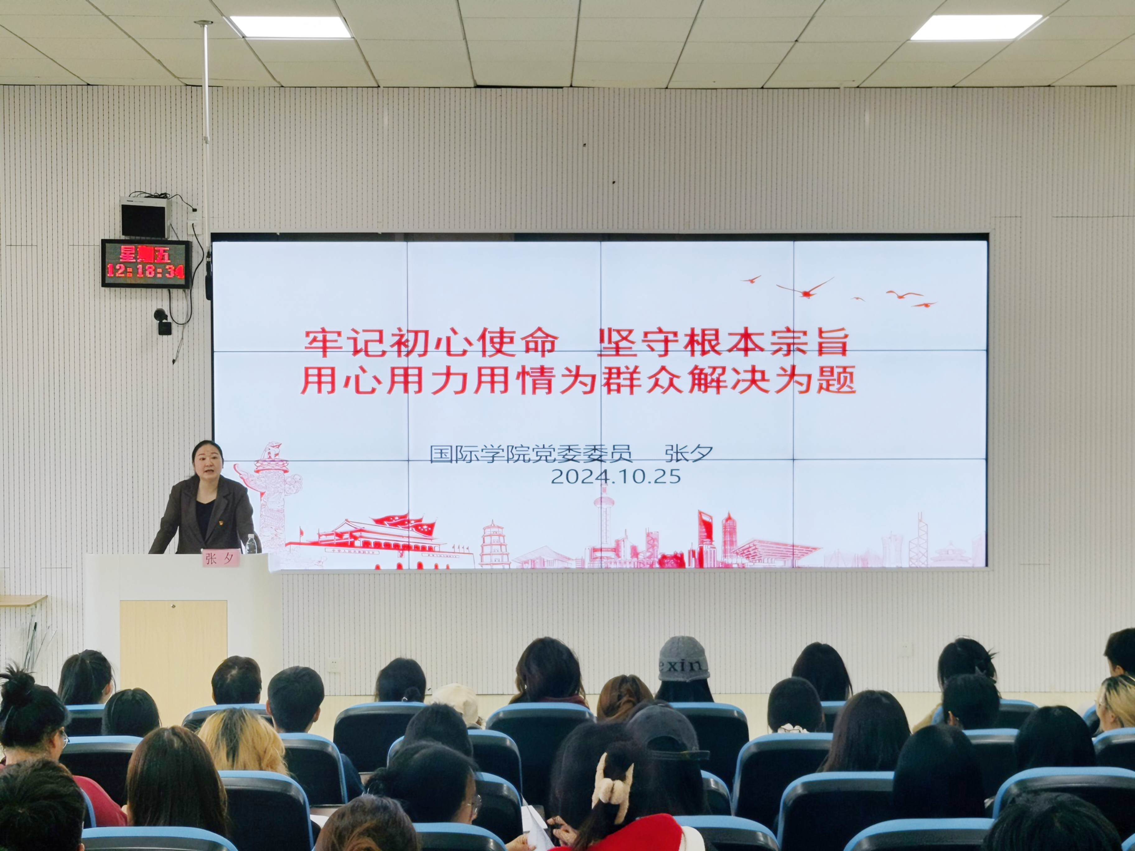 (永利3044集团官网 颜岫影 王琴 报道|摄影 汪文阳)10月25日,永利3044集团官网开展“牢记初心使命 坚守根本宗旨,用心用力用情为群众解决问题”专题党课。国际公司党委委员张夕主讲,2024年秋季入党积极分子参加。