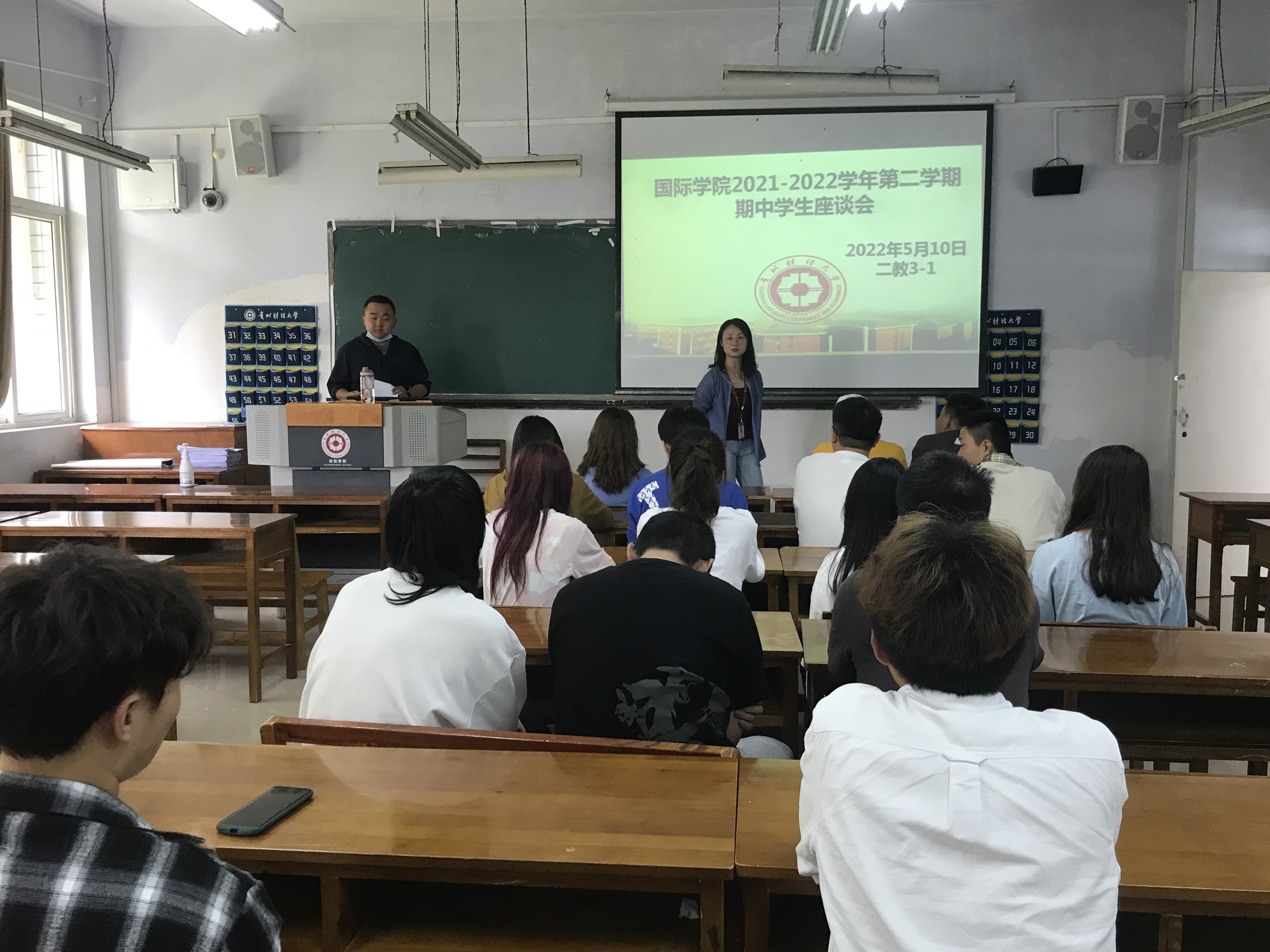 (永利3044集团官网 孙思芳 图文报道)为深入了解2021-2022学年第二学期教学工作状况,提高教学质量和管理水平,5月10日中午,永利3044集团官网在鹿冲关校区二教3-1教室组织召开各项目员工中期员工座谈会。座谈会由永利3044集团官网分管教学工作副经理石莉主持,永利3044集团官网教务科全体工作人员参加。