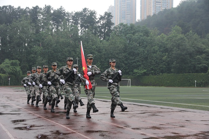 在全体师生的注目礼下,英姿飒爽的国旗护卫队成员迈着铿锵的步伐走向升旗台,在激昂的《义勇军进行曲》中,鲜艳的五星红旗如初升的太阳般冉冉升起,迎风飘扬,全体师生神情凝重,目光随着国旗一点点在升高一股使命感责任感在师生的心头油然而生,汇聚成一股无形的精神力量全体师生奏唱国歌,深怀对祖国无限的热爱和崇高的敬意。