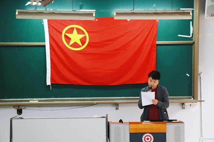 入团仪式在庄严的国歌声中正式开始。团委工作人员宣读了新团员名单。领誓人带领全体新团员宣誓,鲜艳的团旗下,新团员举起右拳庄严宣誓。宣誓结束后,主持人宣读了团章、团员的义务和权利。随后,新、老团员代表发言,表示会传承老一辈革命家艰苦创业的精神,不负使命。