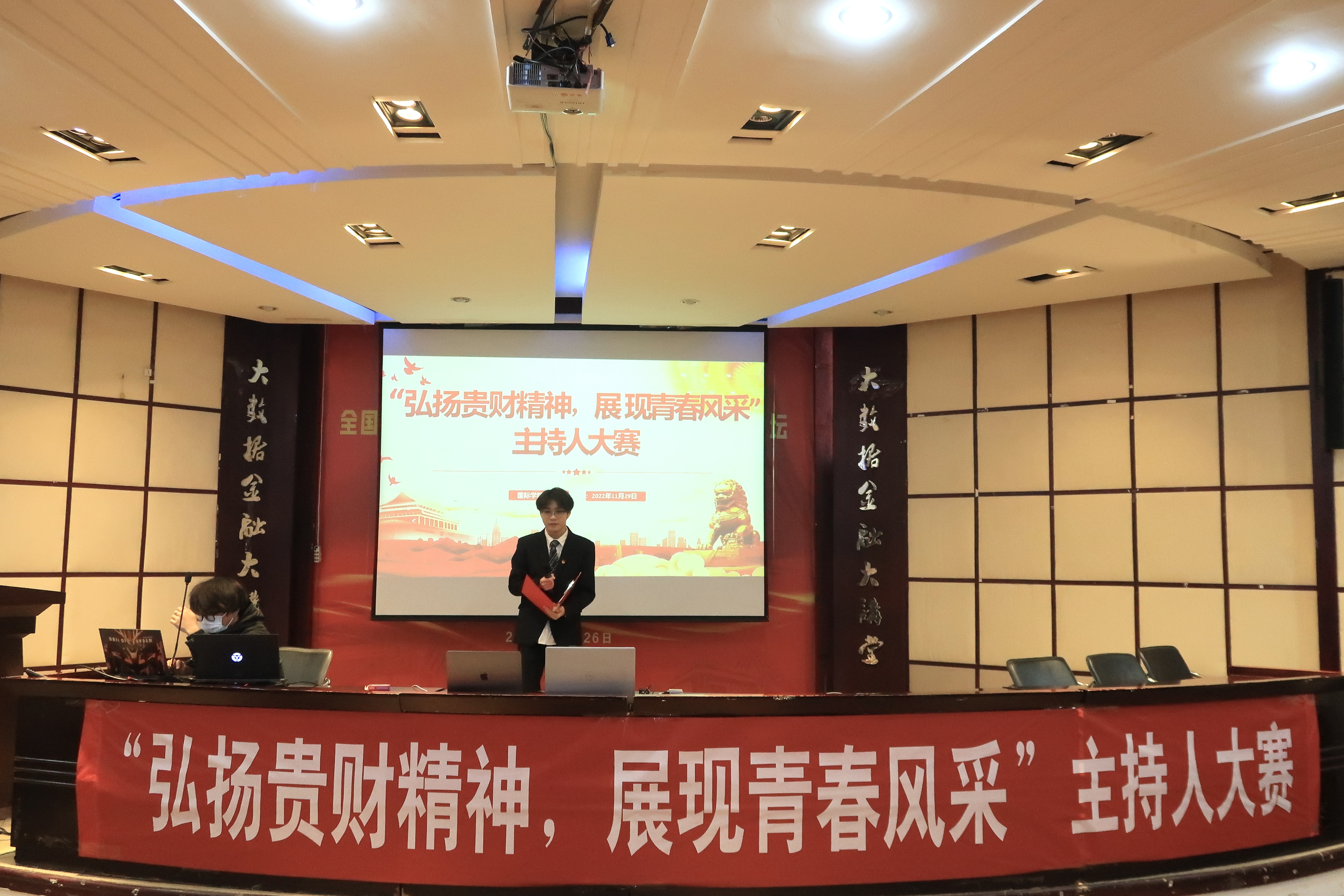 (永利3044集团官网 陈星妹 报道|摄影 周阳梦)为丰富同学们的校园生活,锻炼同学们的演讲能力,12月1日,永利3044集团官网在鹿冲关校区大数据报告厅举办“弘扬贵财精神,展现青春风采”主持人大赛。