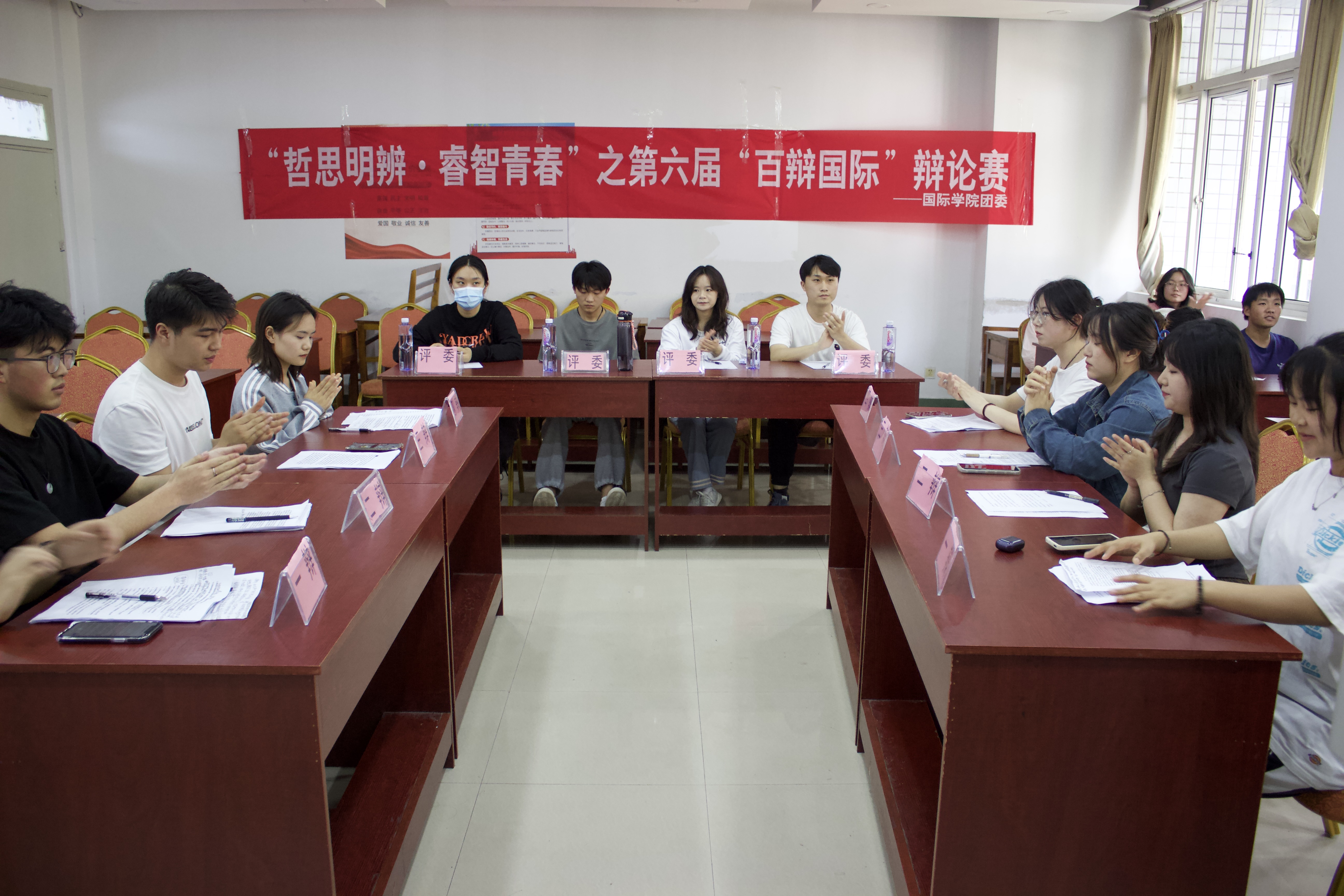 (永利3044集团官网 刘悦 报道|摄影 马星妍 李李通)为培养同学们的逻辑思考能力、语言表达能力和组织能力,激发同学们对一些社会辩题的思考,4月18日下午,永利3044集团官网在鹿冲关校区第二教学楼3-5,3-6教室举办“哲思明辩·睿智青春”第六届“百辩国际”辩论赛初赛。