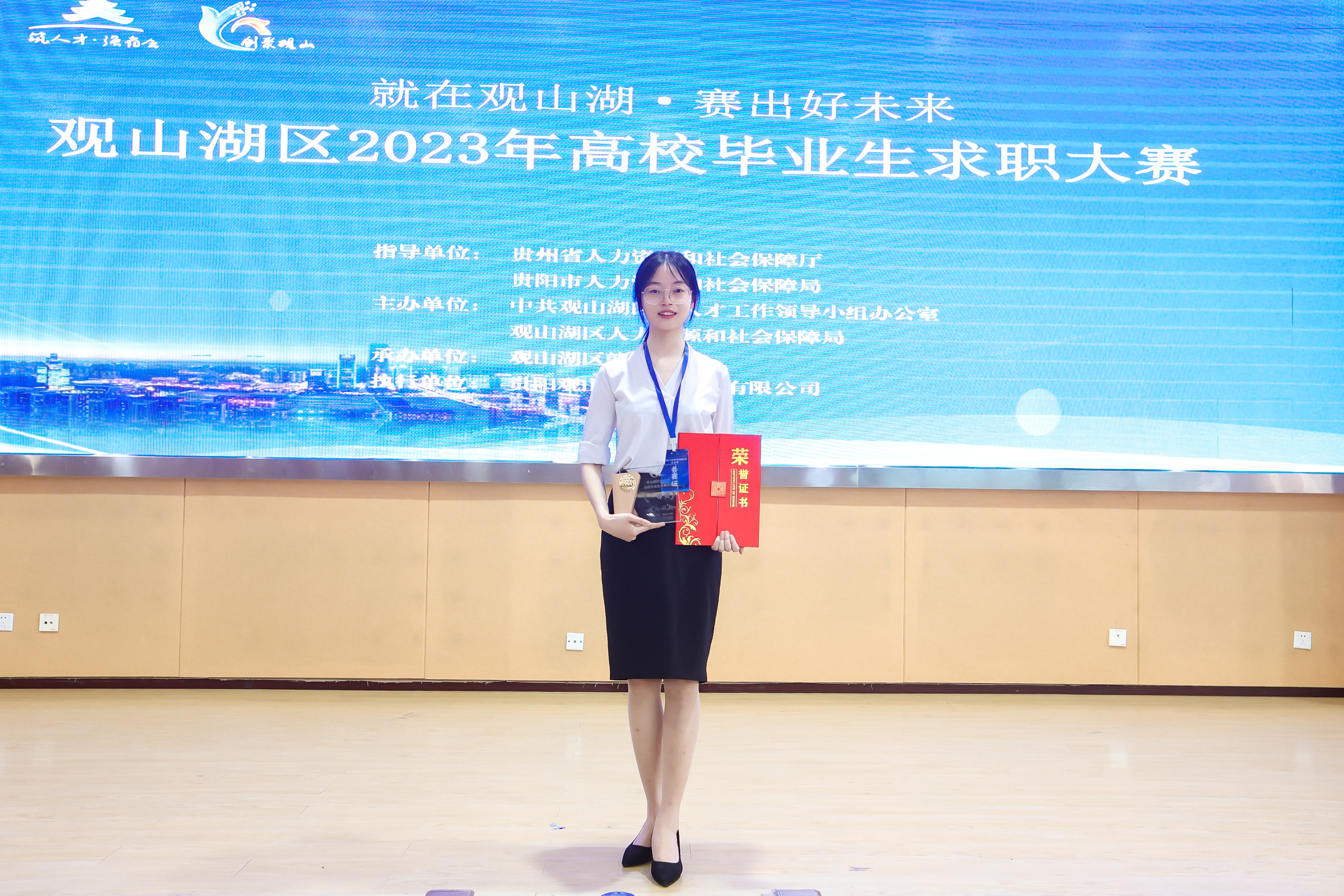 (永利3044集团官网 董宇婧 图文报道)2023年6月20日,由贵州省人力资源和社会保障厅、贵阳市人力资源和社会保障局指导,中共观山湖区委人才工作领导小组办公室、观山湖区人力资源和社会保障局主办,省内11所高校协办的观山湖区2023年高校毕业生求职大赛决赛暨闭幕仪式在贵阳职业技术公司举行。永利3044集团官网员工袁小琪一路披荆斩棘,在各高校的优秀学子中脱颖而出,荣获一等奖。