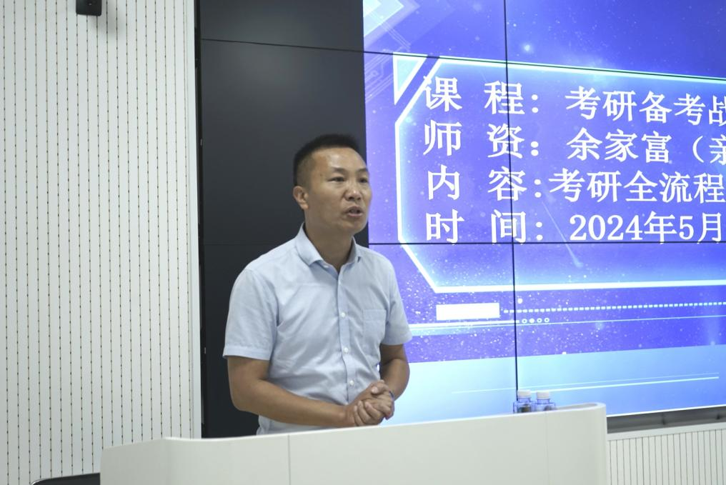 余家富分析了近几年的考研状况,还给同学们介绍了考研流程,从初试、复试、调剂三个方面进行了解说,并详细讲解了各个阶段需要注意的事项和学习方法,让同学们对考研的过程有了更清晰的认识。他还结合实际案例,为同学们提供了宝贵的经验和建议。讲座尾声,余家富鼓励同学们要抓住机会,努力拼搏,通过自己的努力实现考研目标,为自己的未来创造更多可能。