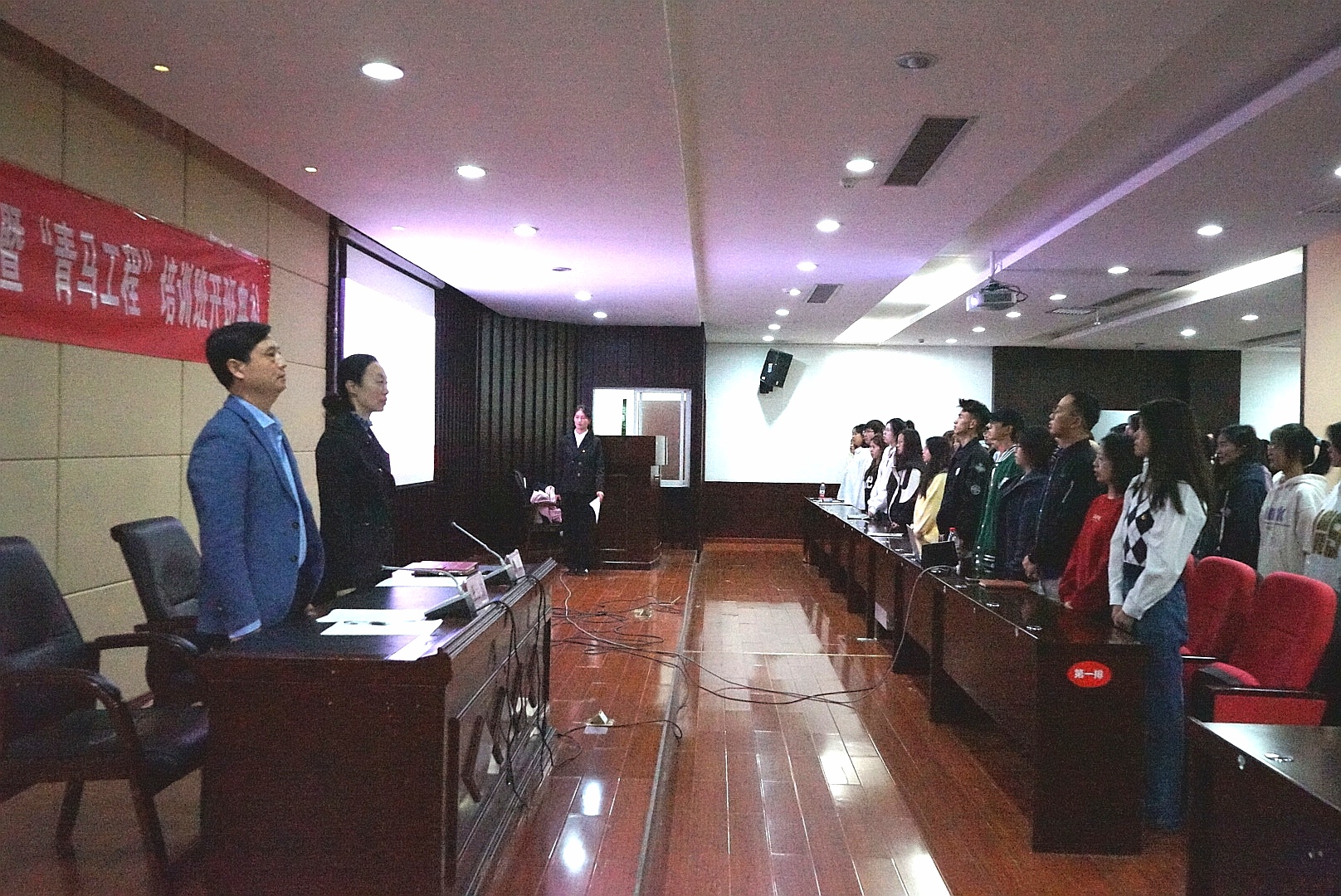 团委员工干部林屹紫如宣读培训纪律,希望学员们谨记团校纪律制度,珍惜培训机会,准时参加;认真听讲,积极互动;遵守纪律,服从管理。学员代表李佳颖发言,表示将秉持严谨求实的学习态度,投入到培训的各项议程,将所学知识融入日常学习生活工作中,以实际行动为公司及团组织的繁荣发展贡献力量。