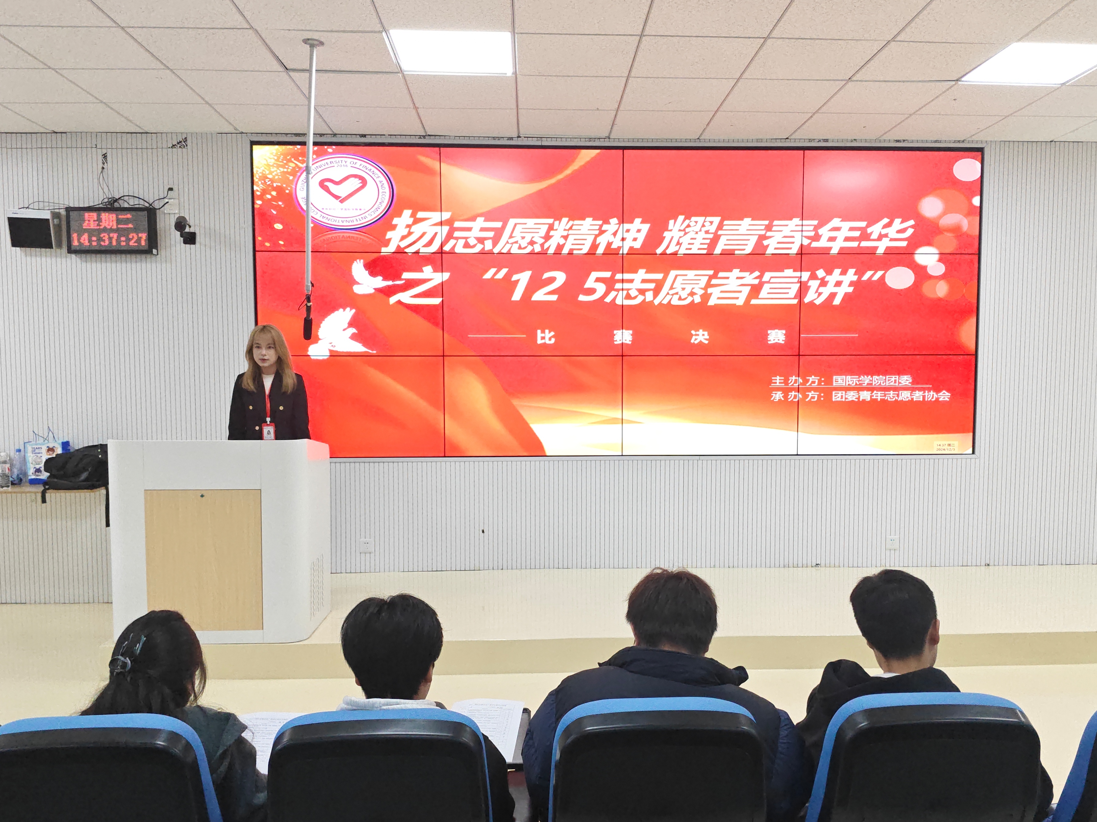 (永利3044集团官网 向美云 报道|摄影 李亭)为提高青年志愿者服务意识,普及志愿服务相关知识,营造志愿服务浓厚氛围,推动永利3044集团官网志愿服务工作走深走实,12月3日,永利3044集团官网团委、青年志愿者协会在乐学楼102教室举办“扬志愿精神,耀青春年华”之“12·5 志愿者宣讲”比赛。