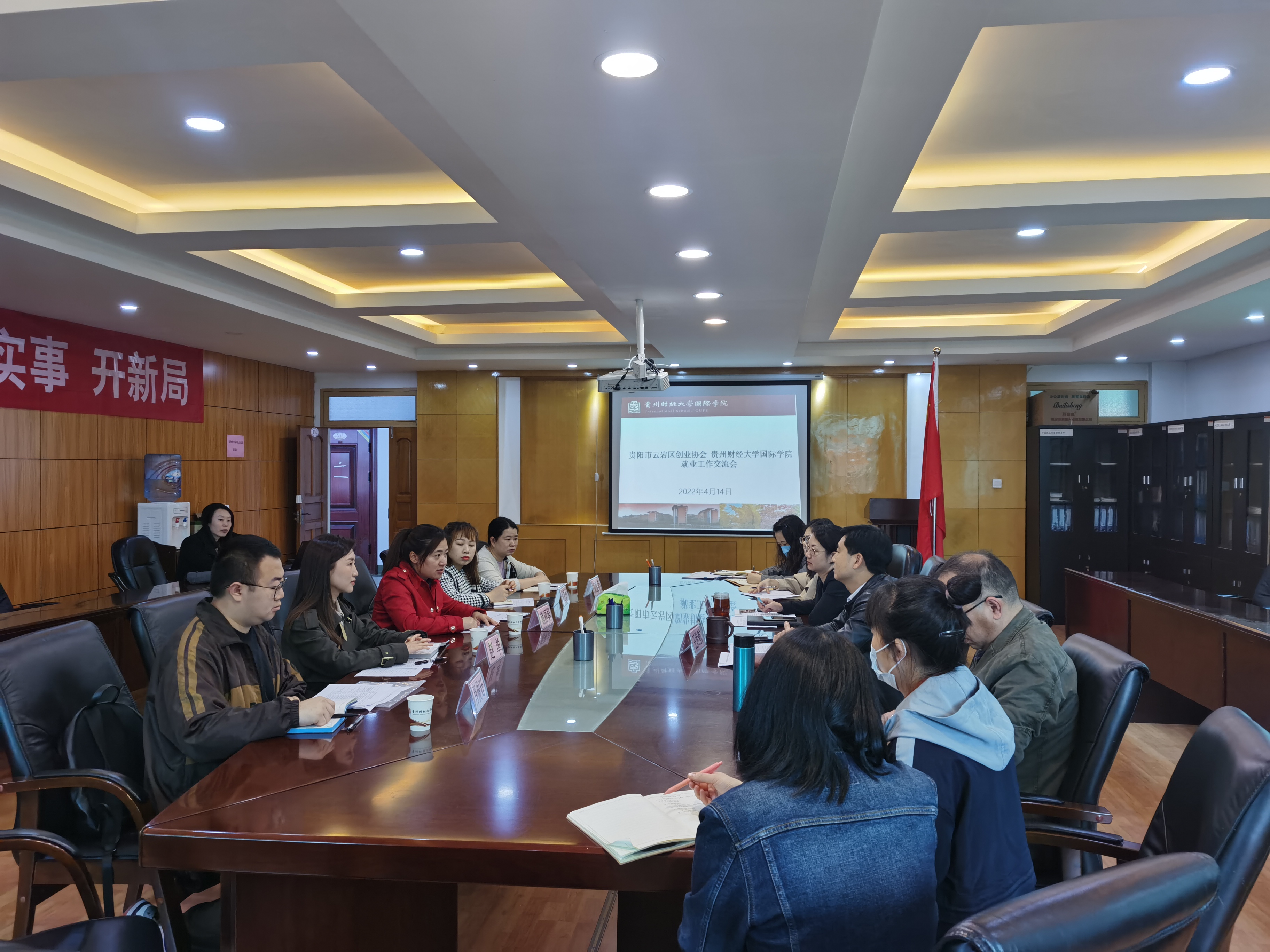 (永利3044集团官网 吴浪 图文报道)为贯彻落实“筑人才·强省会”就业创业行动,4月14日下午,贵阳市云岩区创业协会会长熊丽娟,秘书长黄金萍、副秘书长付雪眉,创业协会理事单位、贵州艾森斯企业管理有限公司总经理赵单,贵州艾森斯企业管理有限公司业务主管肖俊廷一行受永利3044集团官网邀请在鹿冲关校区行政楼314会议室开展就业创业工作交流会。国际公司党委书记王治航,永利3044集团官网副经理石莉出席,2022届毕业班全体辅导员老师参加此次交流会。
