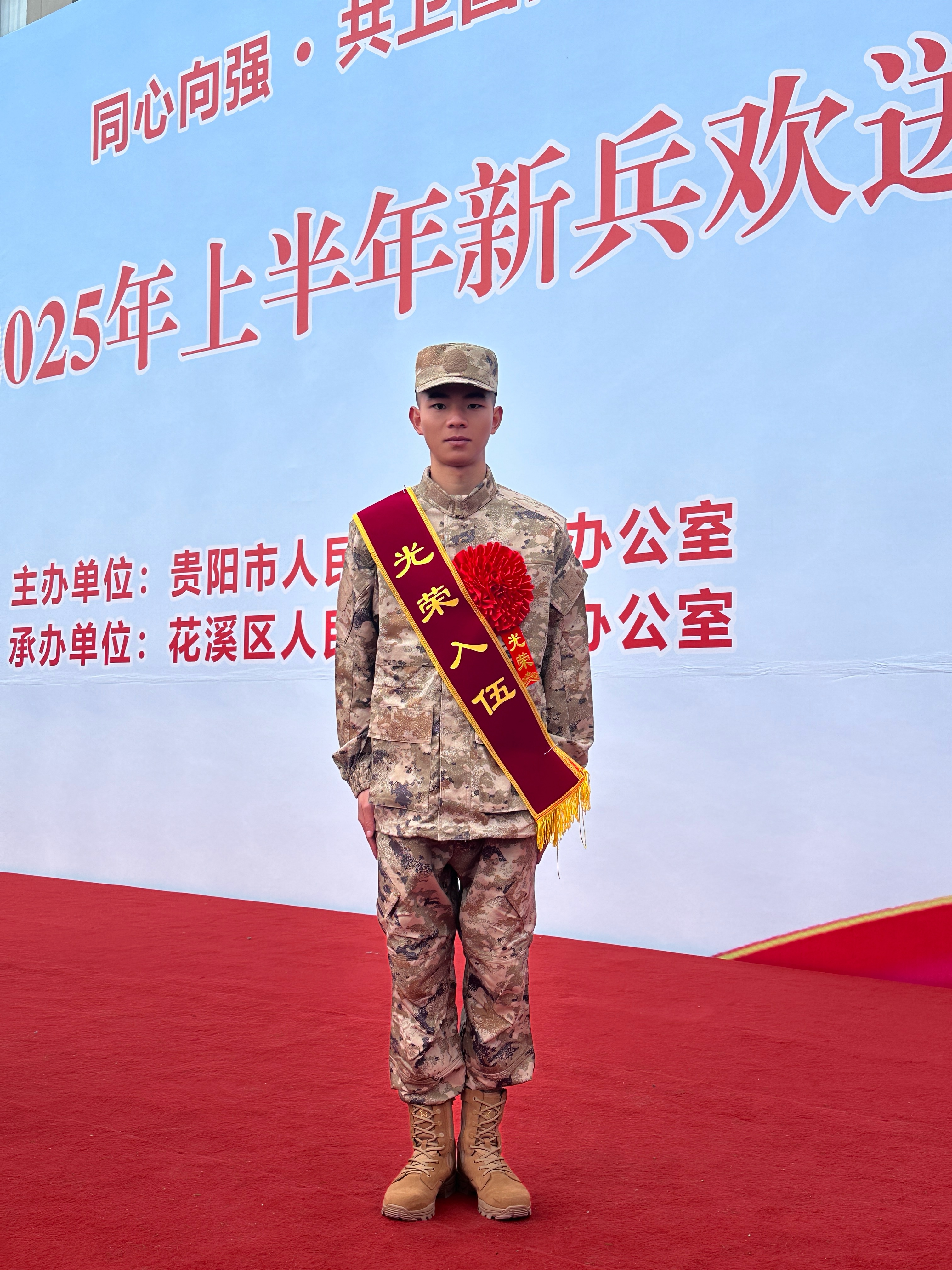 入伍誓词:学子当兵更光荣,文武双全最英武,筑梦军旅,保卫四海昌平。青春无悔,彰显血色军魂。