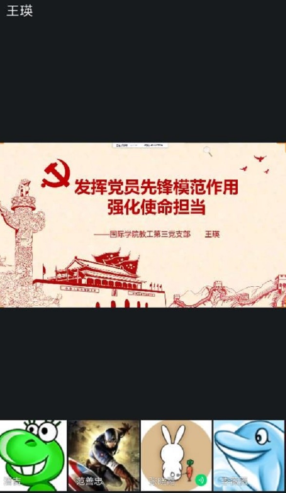 (永利3044集团官网 吴浪 图文报道)3月31日,永利3044集团官网教工第三党支部利用线上会议室开展了2020年第一季度网络党课学习,支部书记王瑛以“发挥党员先锋模范作用,强化使命担当”为题作专题党课讲授,支部全体党员进行了线上集中学习。