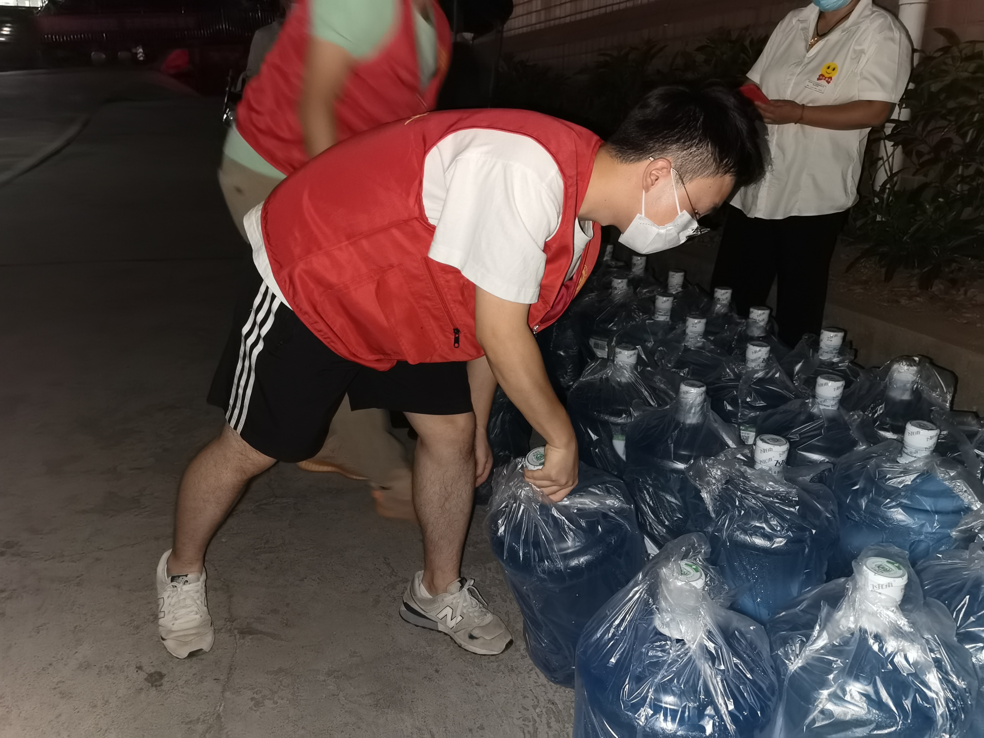 校园疫情防控,有在一线做核酸检测、新冠抗原检测的志愿者,也有这样默默的为大家“解渴”的志愿者,即是在黑夜,党建志愿者鲜艳的红马甲也会让同学们感到温暖。永利3044集团官网员工第五党支部党员辛勤付出,及时解决了同学们喝水问题,发挥了党员的先锋带头作用。