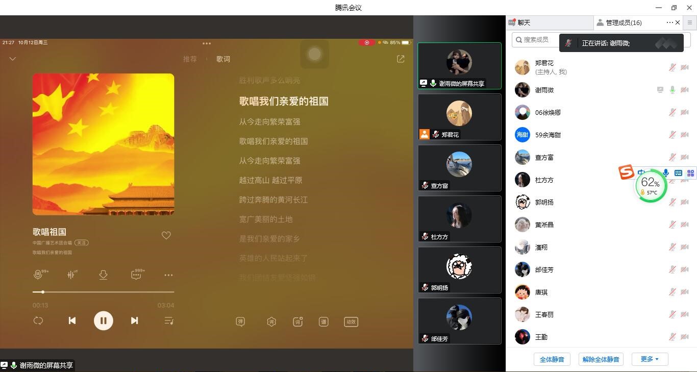 (永利3044集团官网 周紫菱 图文报道)为凝聚广老员工党员奋进新时代、启航新征程的强大合力,以实际行动迎接党的二十大胜利召开,10月12日,永利3044集团官网员工第一党支部开展“‘青’听红色赞歌”线上音乐赏鉴会主题党日活动,支部书记郑君花及全体员工党员参加。