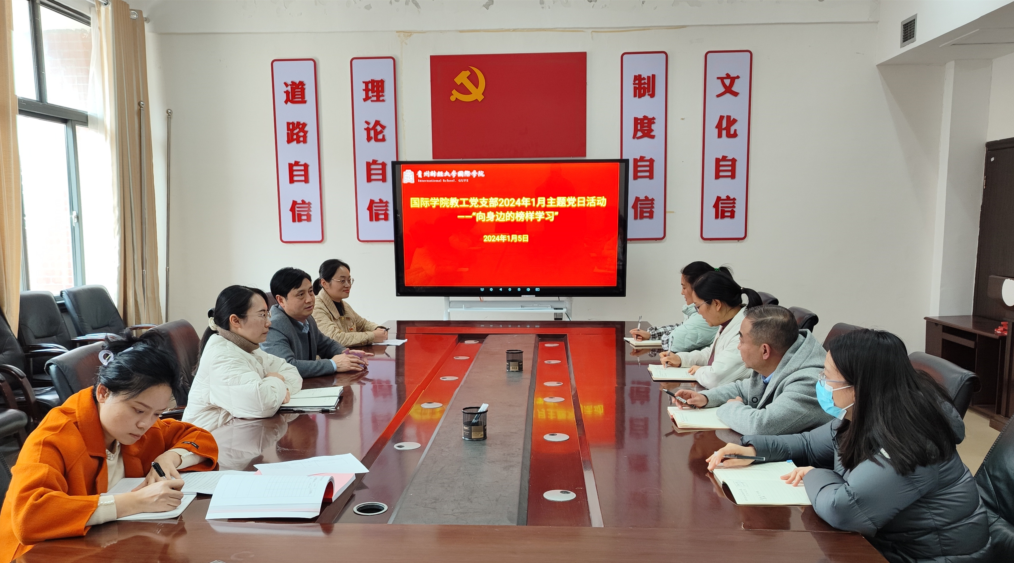 (永利3044集团官网 潘吉 报道| 摄影 朱殊)1月5日,永利3044集团官网教工党支部开展“向身边的榜样学习”主题党日活动。活动邀请了2023年获校级“身边的榜样”和“优秀共产党员”荣誉的公司党委副书记肖启迪;获2023年贵州省高校辅导员素质能力提升骨干训练营二等奖、校辅导员素质能力大赛一等奖、2023年贵州省老员工服务外包创新创业大赛三等奖的公司辅导员李薇薇分享工作经验。永利3044集团官网教工党支部全体党员参加会议。