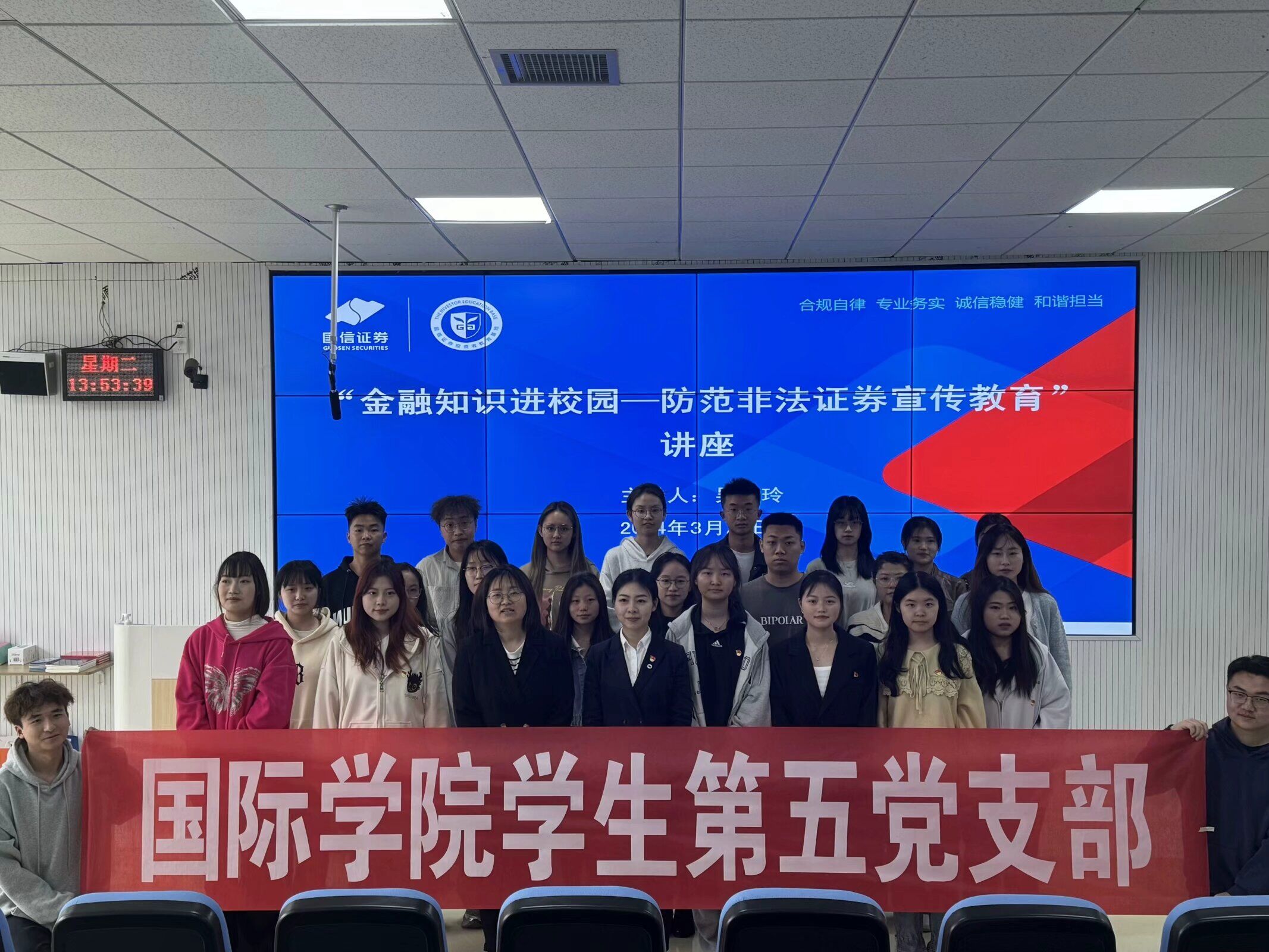 通过“金融知识进校园——防范非法证券宣传教育”讲座,了解金融诈骗以及非法证券宣传的相关知识,对在网络上遇到的金融类知识困惑和困难进行答疑解惑,提高风险防范意识和能力,培养支部党员形成良好的金融素养,营造良好的学术氛围。支部党员们以身作则,积极发挥带头作用,以党建带学风,在专业上练就过硬本领。