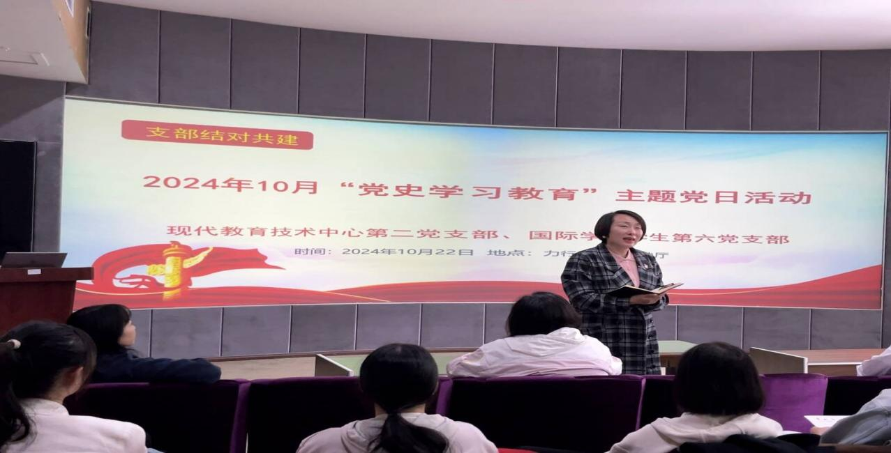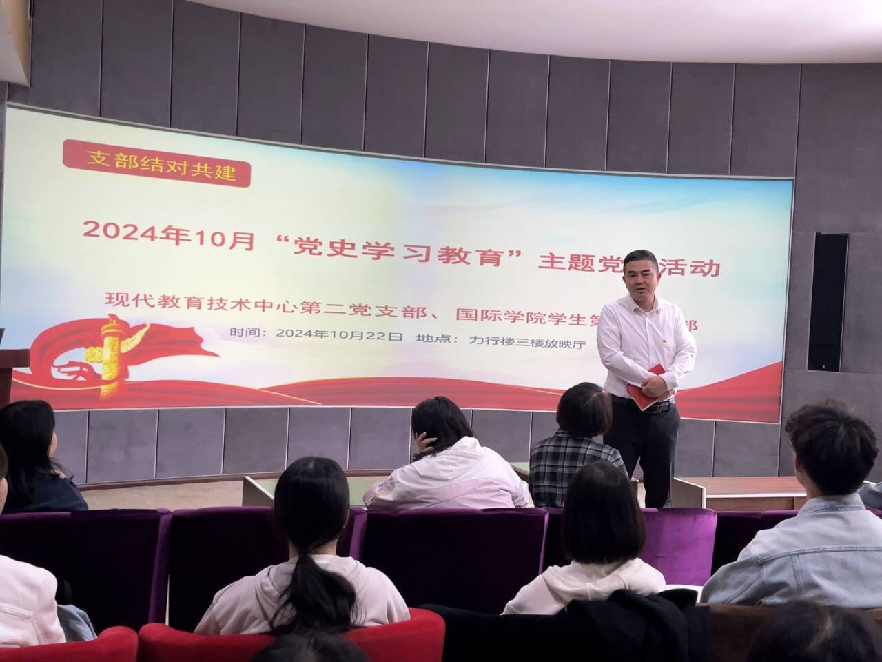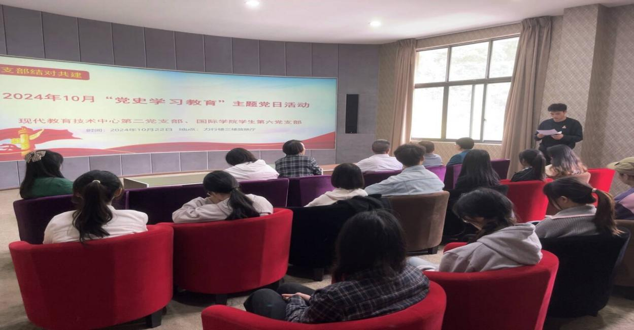 (永利3044集团官网 谢小菲 图文报道)10月22日下午,永利3044集团官网员工第六党支部与现代教育技术中心第二党支部在力行楼3楼放映厅,开展“党史学习教育”主题党日活动。现代教育中心副主任、现代教育技术中心第二党支部书记陈琴,国际公司党委副书记古鸿宇,永利3044集团官网员工第六党支部书记李薇薇以及支部党员参与本次活动。