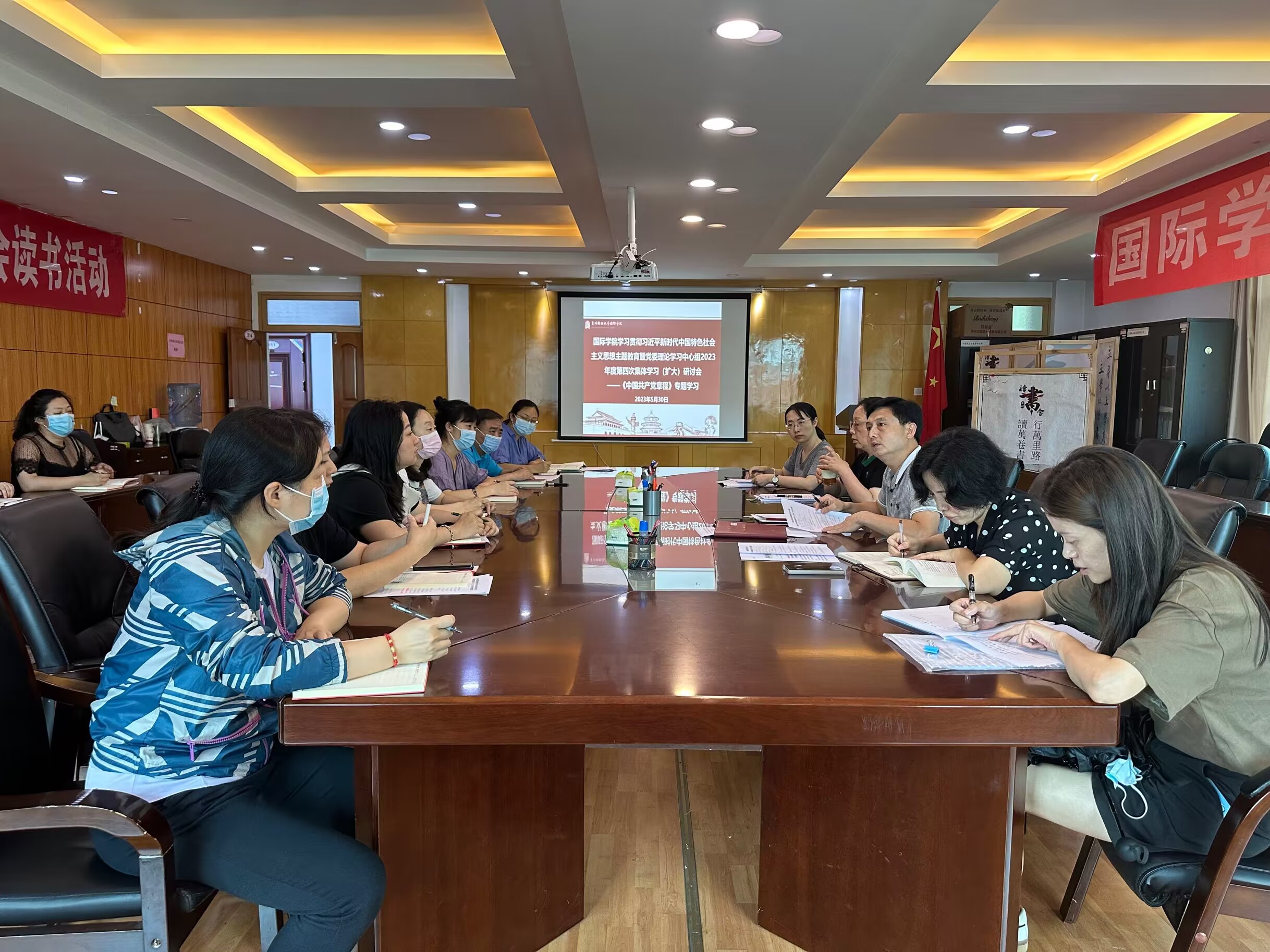 (永利3044集团官网 卫荷 图文报道)5月30日,国际公司党委理论学习中心组在鹿冲关校区行政楼三楼314会议室召开了学习贯彻习近平新时代中国特色社会主义思想主题教育暨2023年度第四次集体学习(扩大)研讨会。公司党委书记王治航主持并讲话,公司党政领导黄暐、肖启迪、刘利音,党委委员张夕、潘吉出席会议。